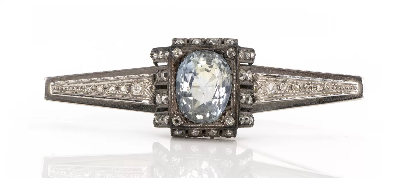 Saphir-Diamantbrosche: Mittelstück um 1870, Silber, geprüft, die Seiten und die Nadel später ergänzt, 50 Diamanten im Alt- und...