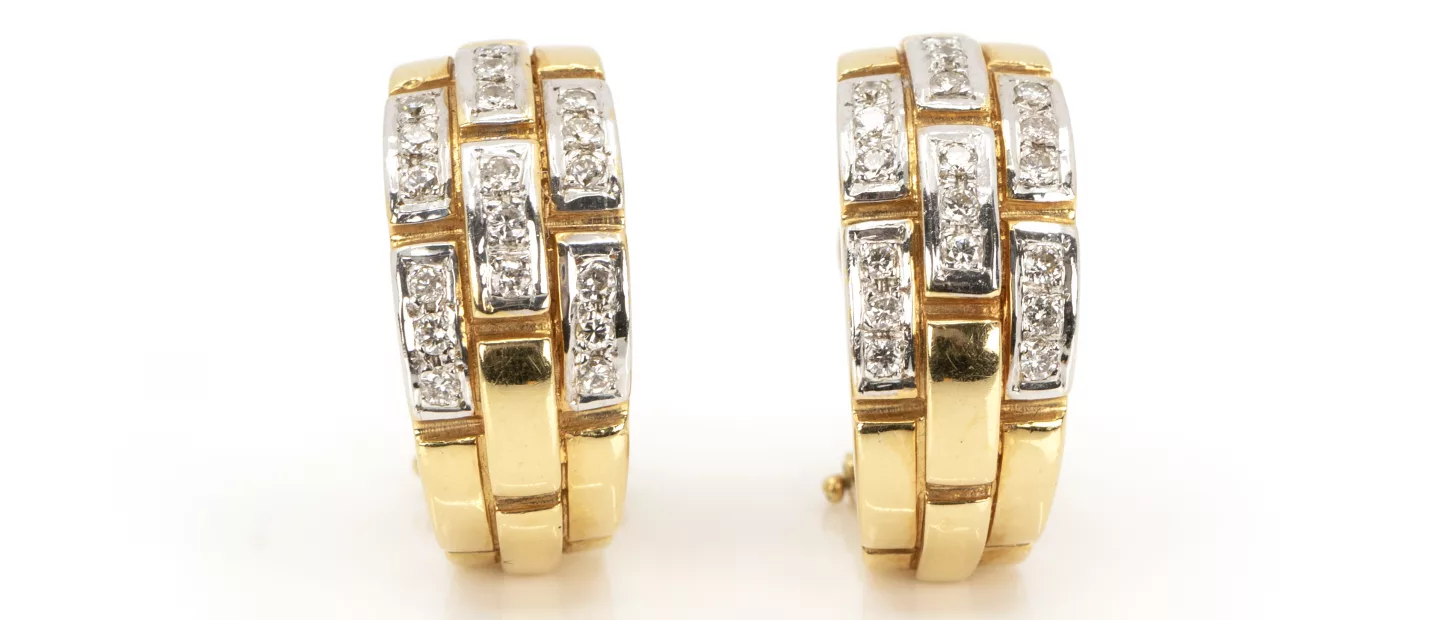 Paar Diamantcreolen: 750 Gelb- und Weißgold, punziert, jeweils mit 18 Diamanten im Brillantschliff, gesamt ca. 0,36 ct, G-H, si, Ø...