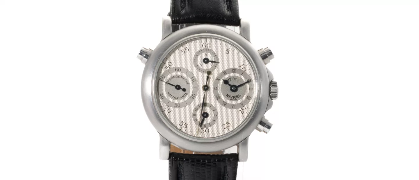 Nivrel Chronographe Rattrapante: Referenznr. 505001A, Automatik, Stahl, gebläute Zeiger, skelettierter Boden, 30 Minuten-Zähler,...