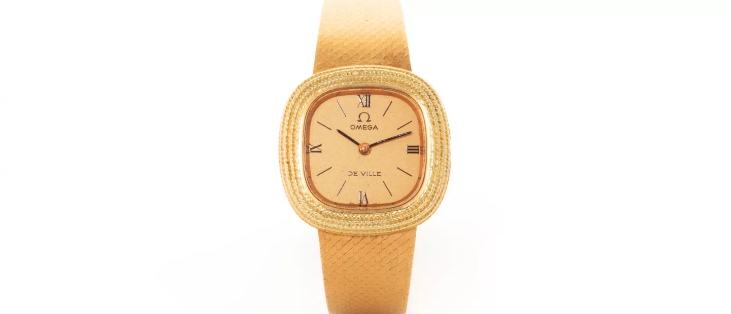 Omega De Ville: Schweiz, ca. 1970er Jahre, Handaufzug, Gehäuse 585 Gelbgold, Durchmesser 23 mm, Original-Milanaisearmband, 585...