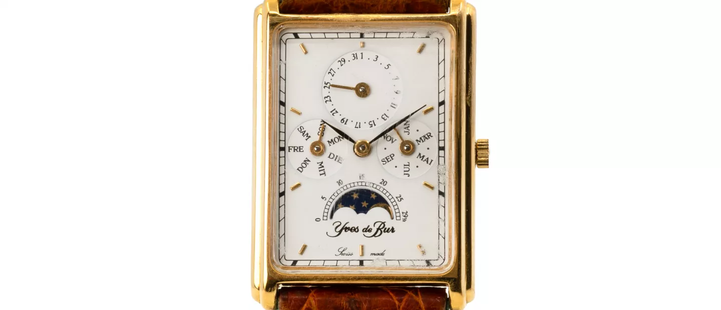 Yves de Bur: Handaufzug, Referenznr. 91307Z, 1992, Mondphase, Tages- und Monatsanzeige, 750 Gelbgold, getestet,, Gehäuse ca. 3,2 x...