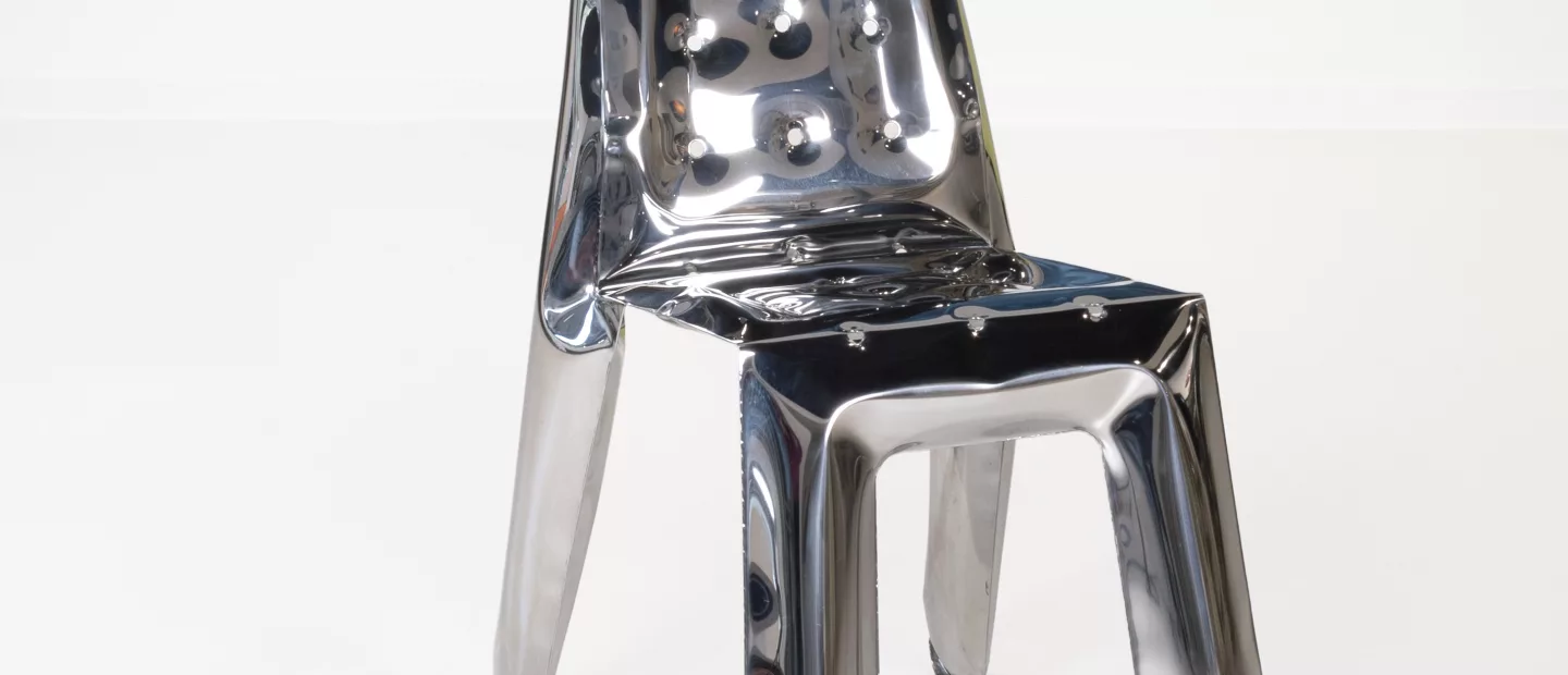 Stuhl 'Chippensteel 0.5' in Inox, Entwurf von Oskar Zieta: Zieta Studio, Polen, Oskar Zieta (1975), Inox (rostfreier Stahl), Höhe...