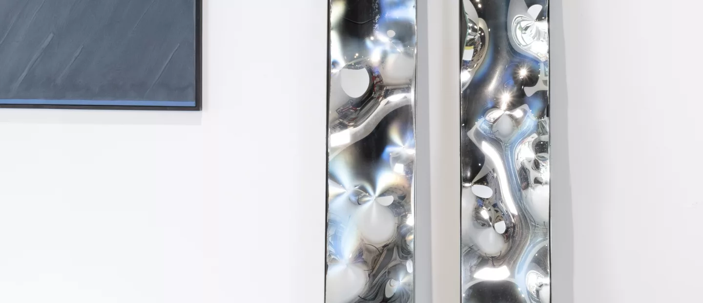 Glasmalerei 'Victoria Spiegel' von Stefan Godecki: 2-tlg., Stefan Godecki (1958 Polen), Glas, Metall, Montageschaum, 200 x 22 x 11...