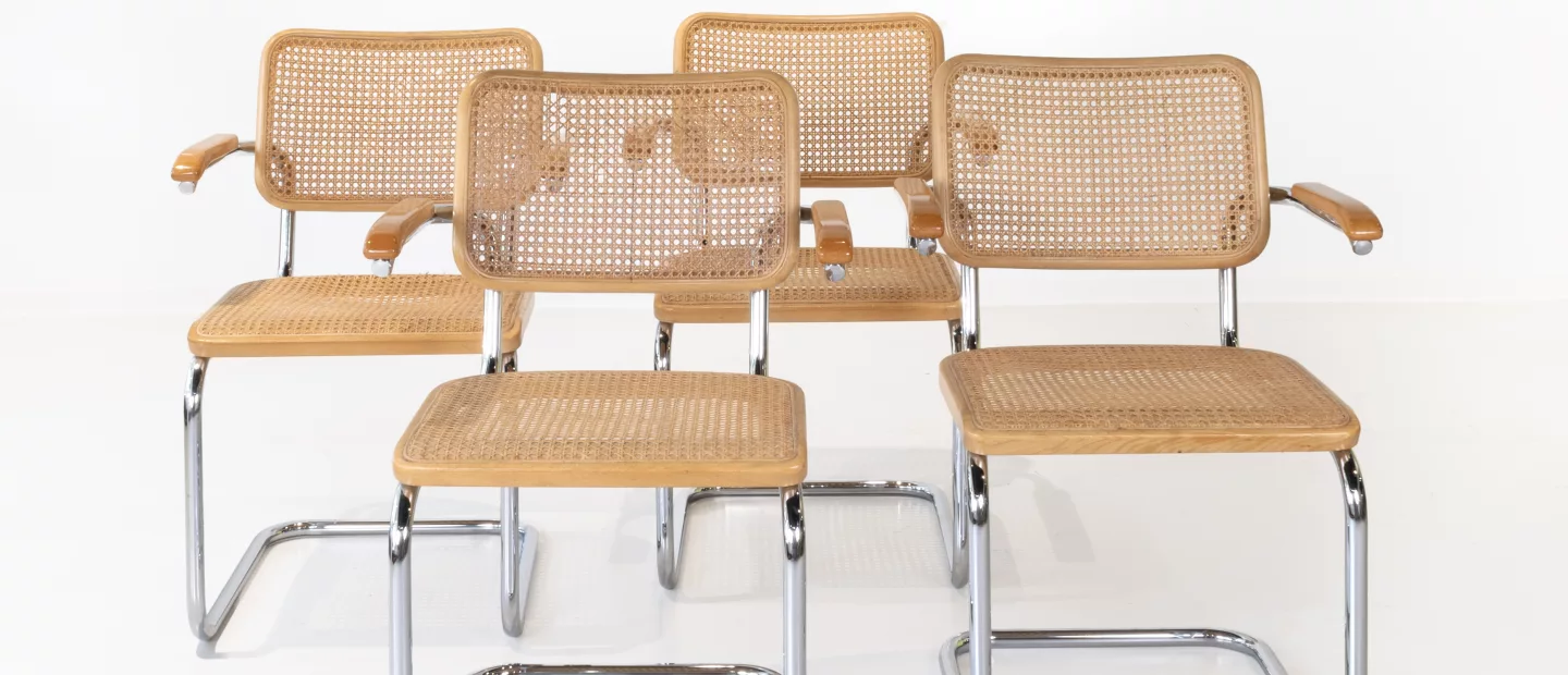 Set Thonet Freischwingerstühle 'S64 V': 4-tlg., Thonet, Frankenberg, Entwurf von Marcel Breuer (1902-1981), jeweils Buche, klar...