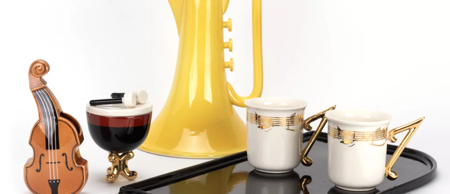 Villeroy & Boch Designservice 'Little Symphony': 6-tlg., Villeroy & Boch, Mettlach, 1989/90, Porzellan, weiß, farbig gefasst,...