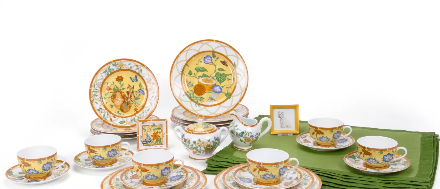 Hermès Kaffee-/Frühstücksservice 'La Siesta': 28-tlg., Hermès, Frankreich, Ende 20. Jh., Porzellan, weiß, handaufgebrachte...