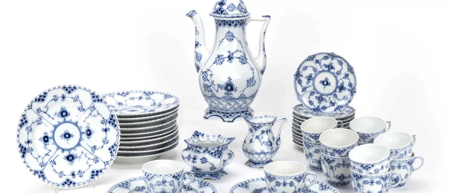 Royal Copenhagen Kaffeeservice 'Musselmalet': 41-tlg., Royal Copenhagen, Dänemark, Mitte/Ende 20. Jh., Porzellan, weiß, monochrom...