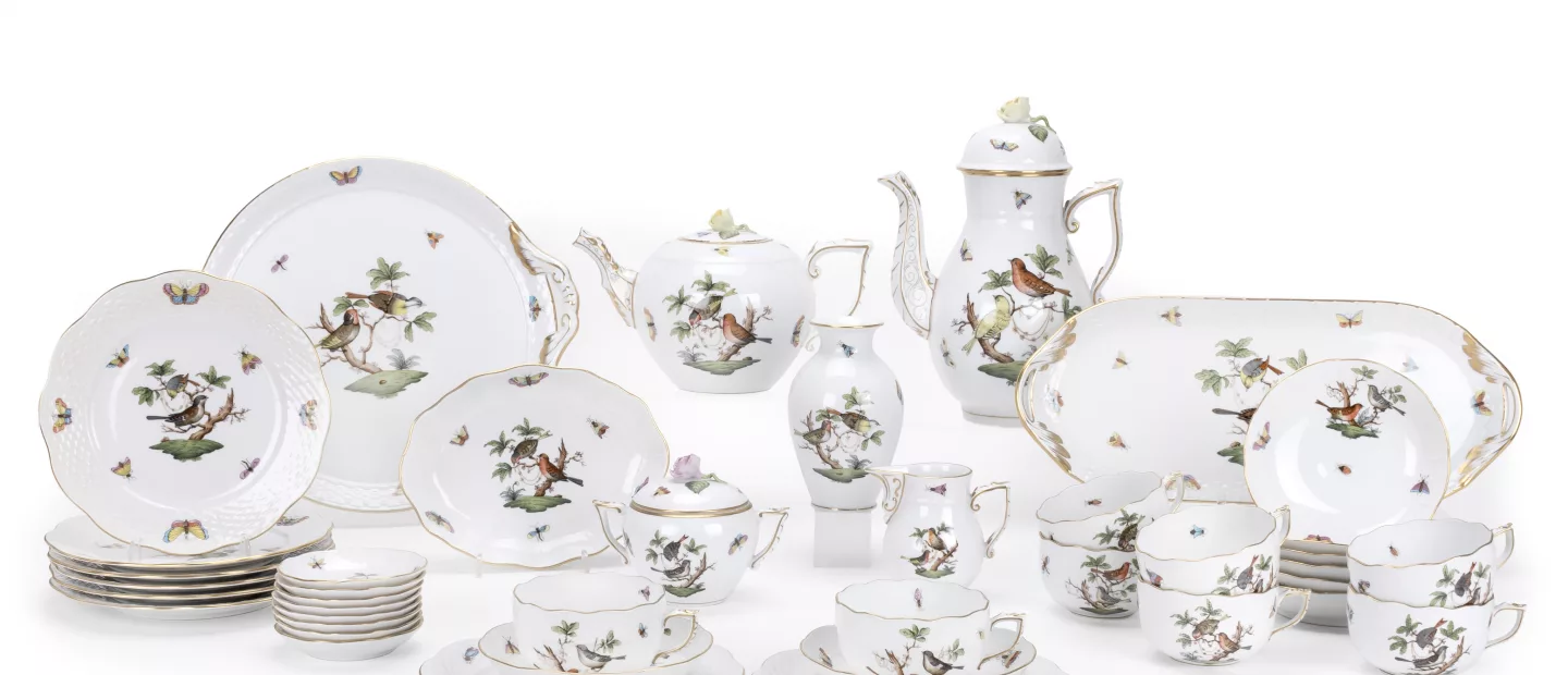 Herend Speiseservie 'Rothschild': 29-tlg., Herend, Ungarn, Ende 20. Jh., Porzellan, weiß, farbig bemalt und gold staffiert, 11...