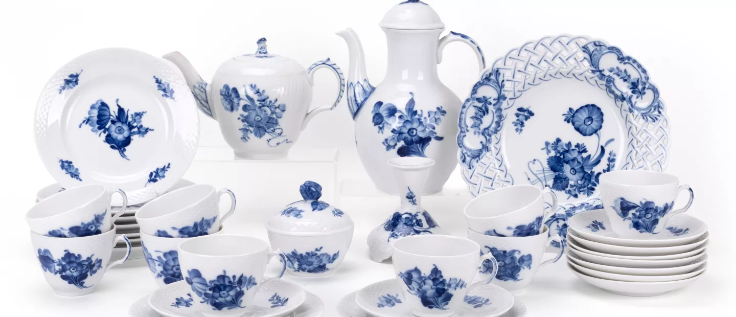 Royal Copenhagen Kaffee- und Teeservice 'Blaue Blume': 32-tlg., Royal Copenhagen, Dänemark, Mitte/Ende 20. Jh., Porzellan, weiß,...