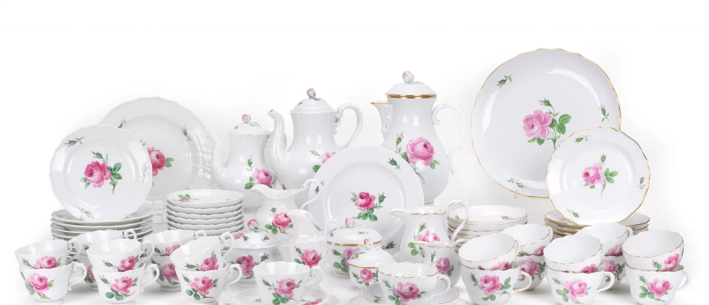 Meissen Kaffeeservice 'Rote Rose': 83-tlg., Meissen, Anfang/Mitte 20. Jh., Porzellan, weiß, farbig staffiert, Konvolut bestehend aus...
