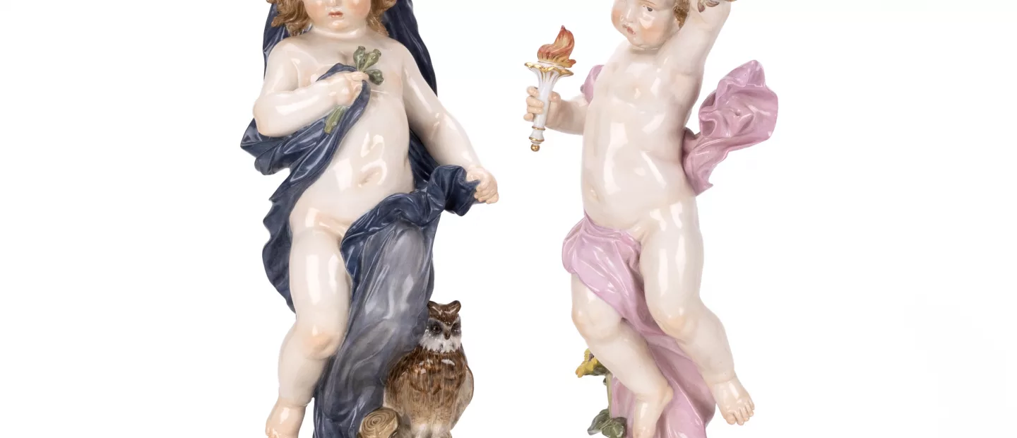 Meissen Figur-Allegorien 'Der Tag' und 'Die Nacht': 2-tlg., Meissen, Entwurf von Heinrich Schwabe (1847 - 1924) aus den Jahren 1880...