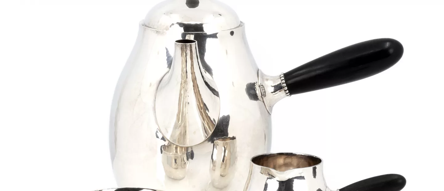 Georg Jensen Silberservice: 3-tlg., Georg Jensen, Dänemark, Entwurf 1915, Ausführung ab 1945, 925 Silber, punziert, Modell 80A, 80F...
