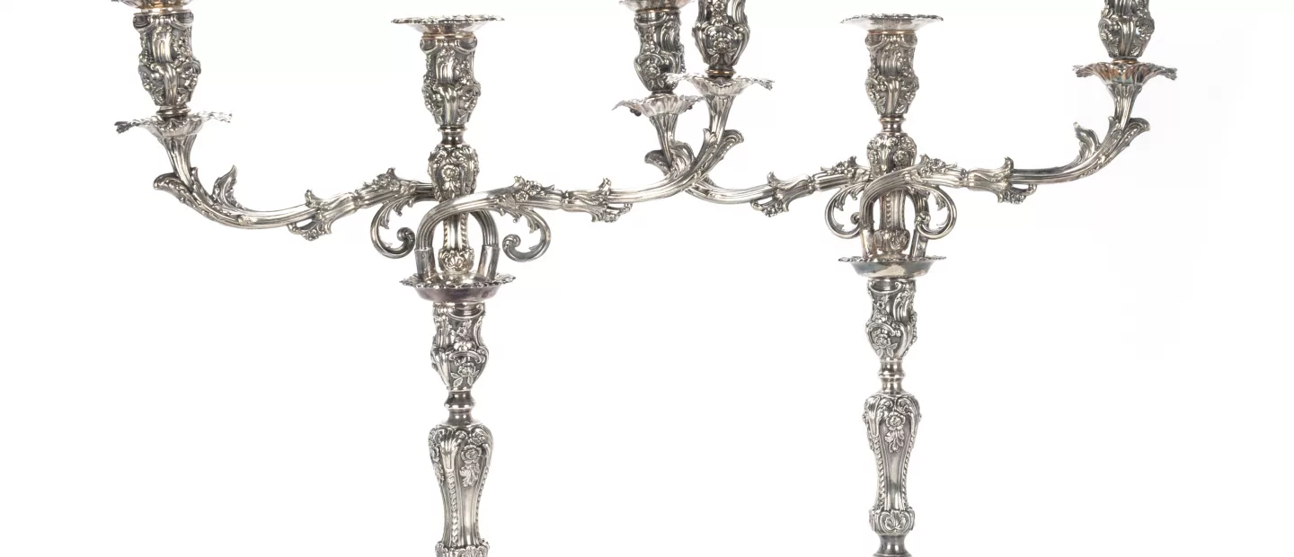 Paar Silber-Kandelaber: 2-tlg., Sheffield, England, 1845/46, 925 Silber, punziert, Jahrespunze, Feingehalt, Queen Victoria Marke,...