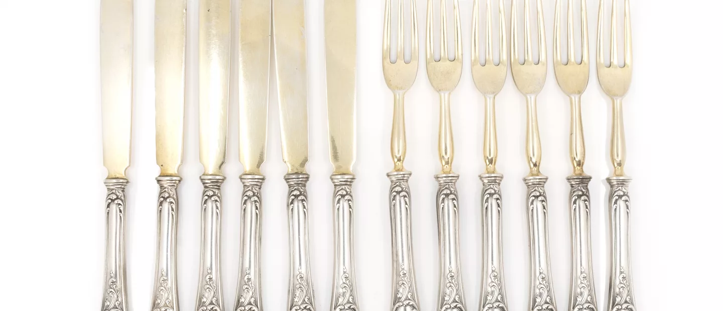 Carl Fabergé Silber-Dessertbesteck: 12-tlg., Peter Carl Fabergé, Moskau, 1908 - 1926, 84 Zolotniki (875 Silber), Stadtmarke,...