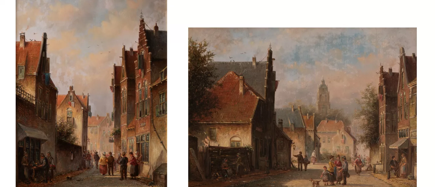 Dörfliche Straßenszenen mit einer Kirche, zwei Gemälde, jeweils Öl auf Holz, 18 cm x 24 cm und 24 cm x 18 cm Werkmaße, jeweils...