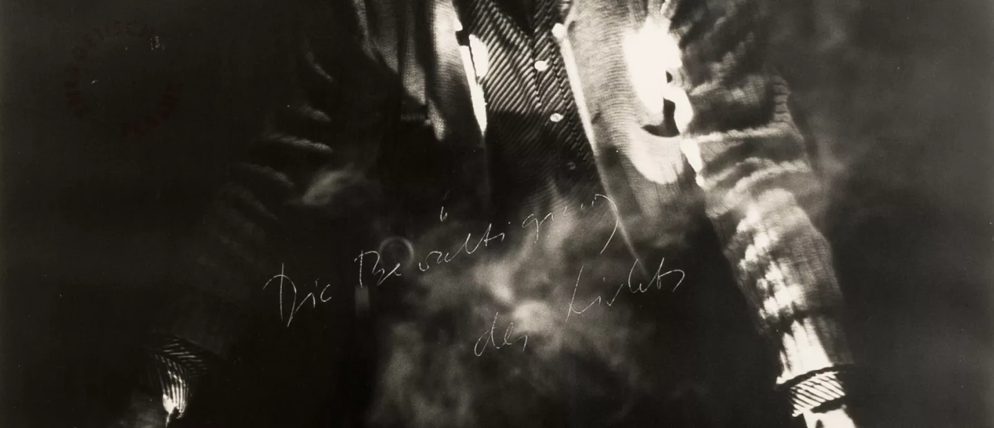 'Die Bewältigung des Lichts' (Selbstporträt), Offset auf Fotopapier, mit aufgeklebtem runden Spiegel, 60,5 cm x 50,5 cm Blattmaß,...