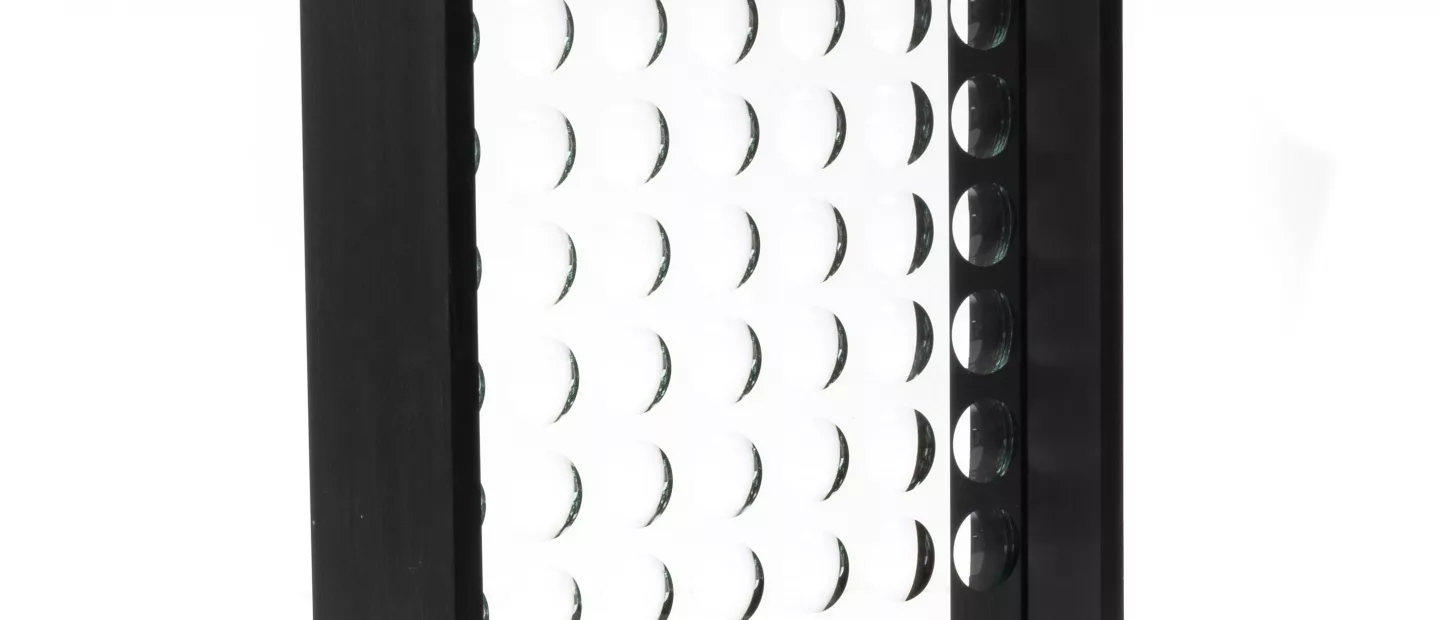 Ohne Titel (Linsen), Glas mit 56 konkaven Vertiefungen in schwarzem Holz eingefasst, 34 cm x 11 cm x 40 cm Werkmaß, signiert, 85 datiert,...