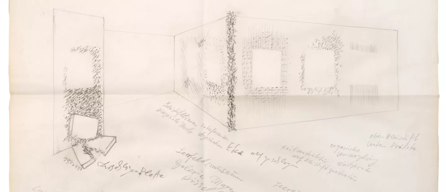 Skizze zur Ausstellung in der Galerie Hans Mayer, Graphitstift auf Papier, 61 cm x 78,5 cm Blattmaß, signiert, 1976 datiert, betitelt,...