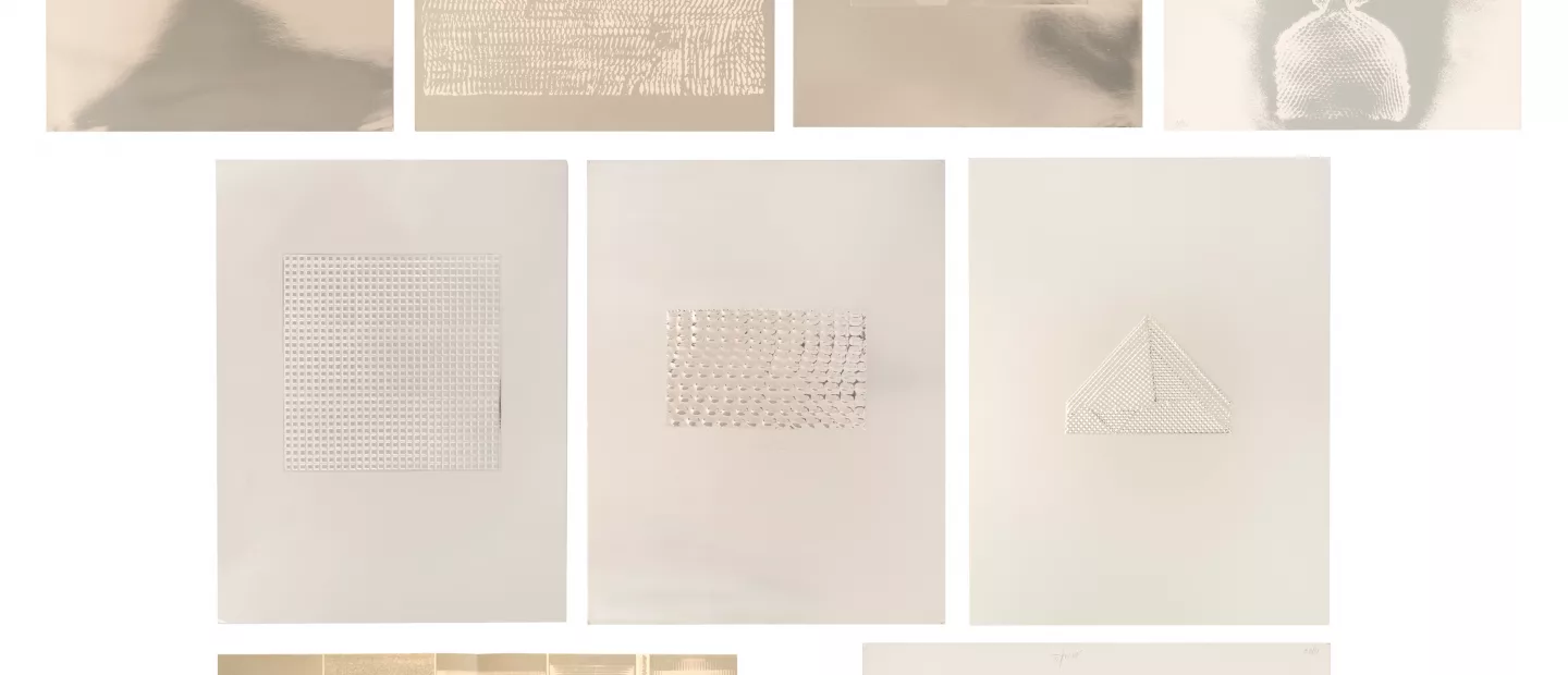 'Made in Silver', 8 Bll., lose in Orig.-Mappe mit Aluminiumbeschichtung, 1 Prägung auf Aluminium, 1 Falt-Relief auf Aluminium, 1 Collage...