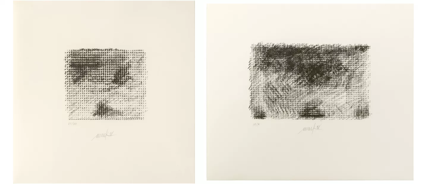 Kleines und großes schwarz-weiß Raster, zwei Grafiken, jeweils Lithografie auf Velin, kleines schwarz-weiß Raster 29 cm x 28,5 cm...
