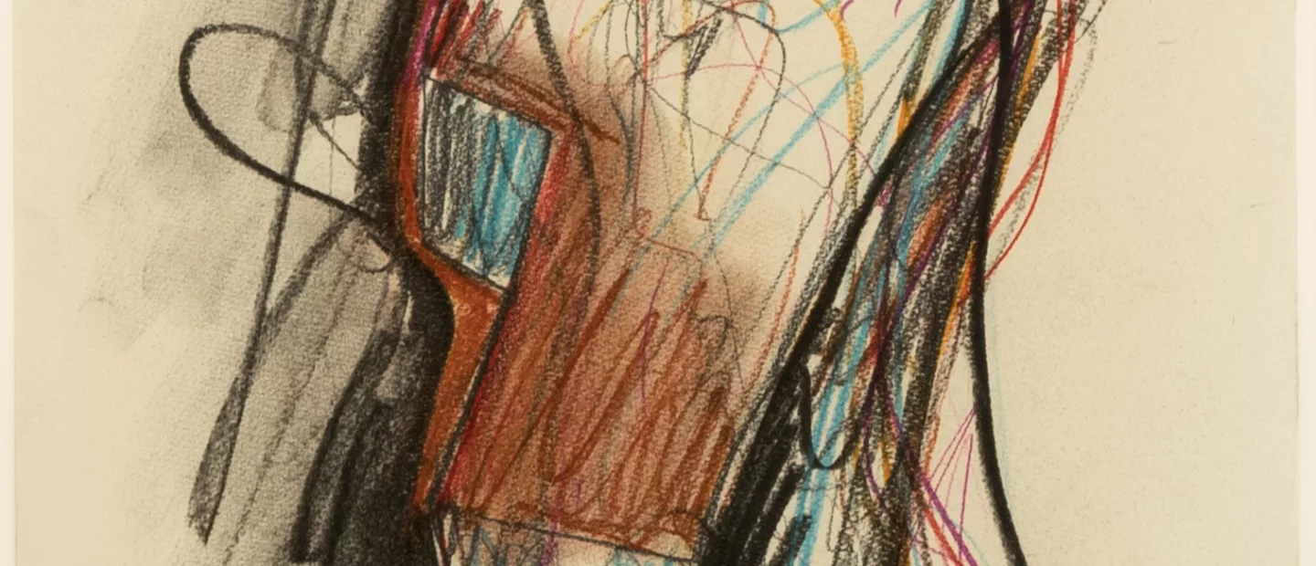 Ohne Titel, Kohlestift und Farbkreide auf Velin, 40 cm x 30 cm Blattmaß, signiert, 81 datiert, montiert, Kanten leicht aufgeworfen, minimal...