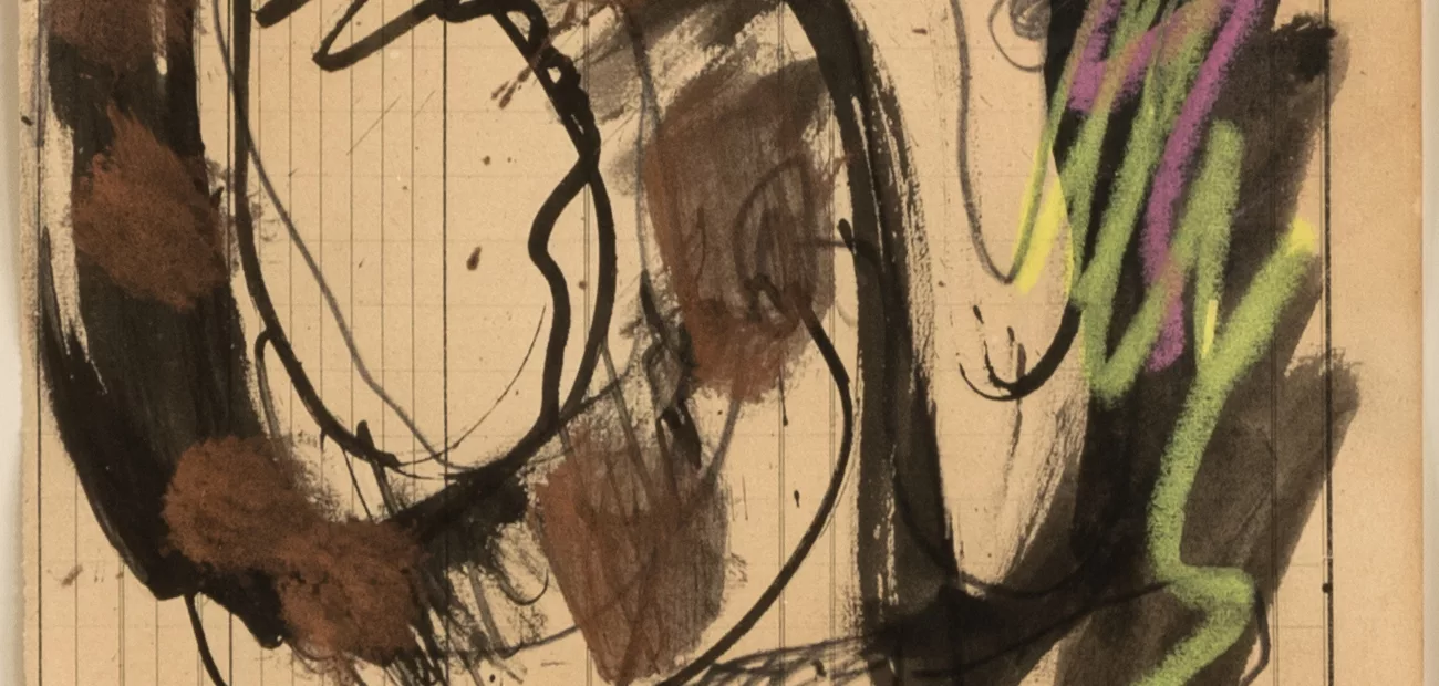 Ohne Titel, Tusche, farbige Kreide und Gouache auf Journalpapier, 29,5 cm x 21 cm Werkmaß, signiert, 28.11.81 datiert, montiert, Signatur...