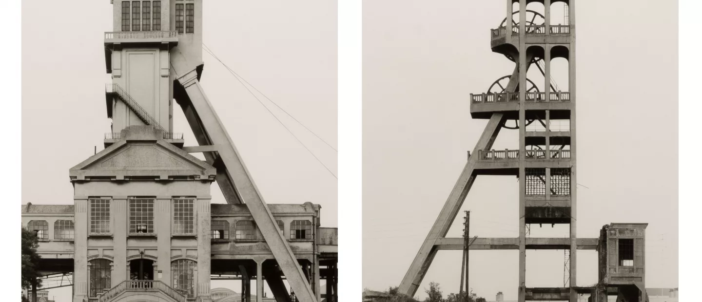 Zwei Fördertürme: B. Fosse Grenay No.1 und Billy-Les-Mines (1967), Lambda C-Print auf Papier, 59 cm x 45,5 cm Sichtmaß, wohl aus einer...