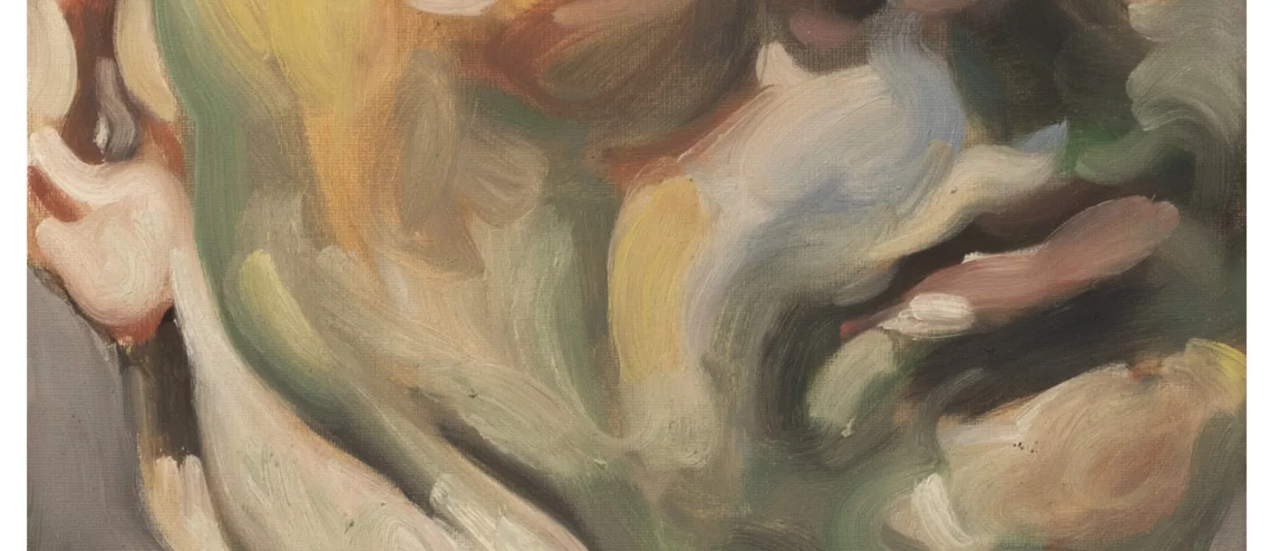 Selbstbildnis, Öl auf Leinwand, 40 cm x 30 cm Leinwandmaß, monogrammiert, 87 datiert, verso signiert, 17.6.1987 datiert, minimal fleckig
