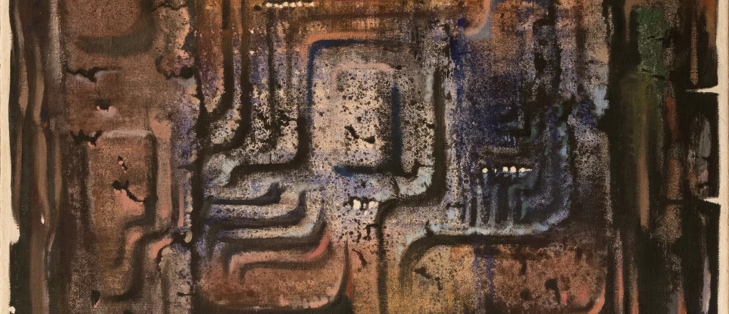 Informelle Komposition, Mischtechnik auf Papier, 15 cm x 22 cm Sichtmaß, monogrammiert, 75 datiert, leicht nachgedunkelt, montiert