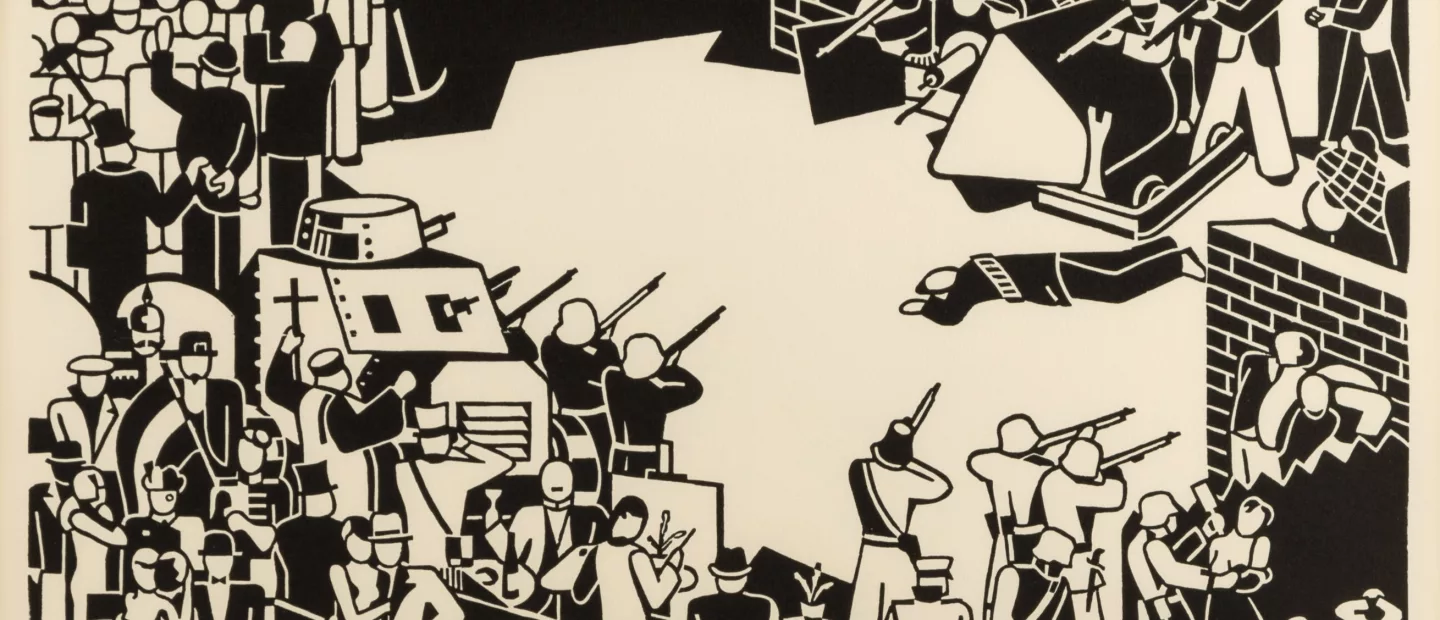 'Bürgerkrieg', Siebdruck auf Papier, 34 cm x 42 cm Sichtmaß, signiert, 58/100 nummeriert, 1928/'78 datiert, betitelt, montiert, leicht...
