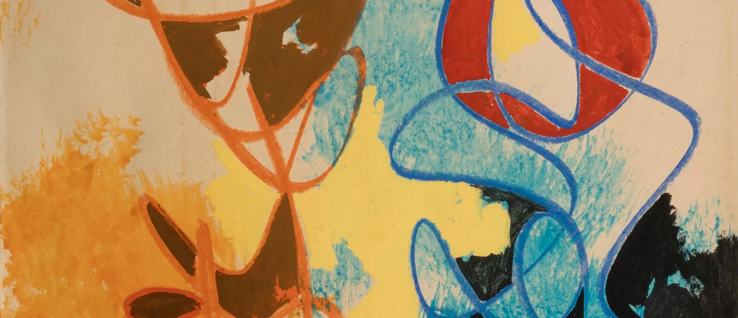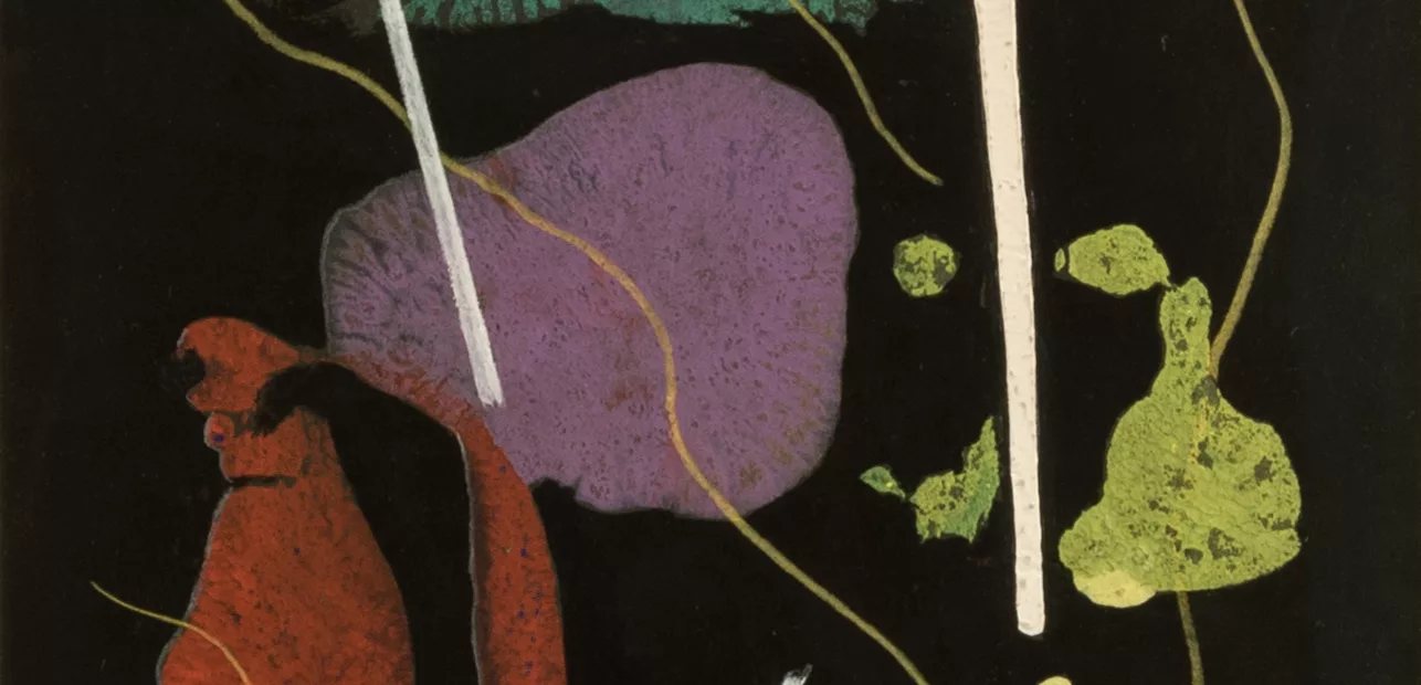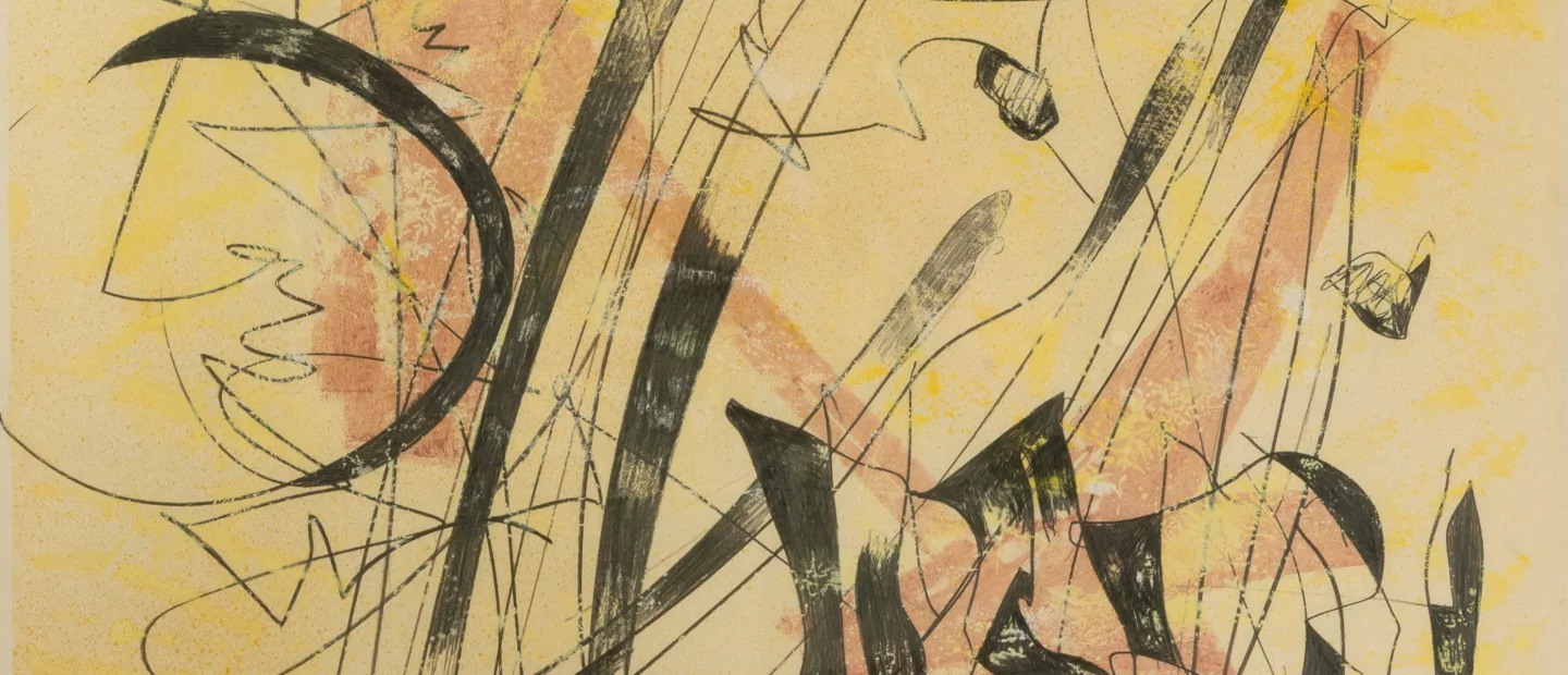 Abstrakte Komposition, Mischtechnik auf Papier, 50 cm x 72,5 cm Sichtmaß, signiert, 61 datiert, partiell minimal stockfleckig