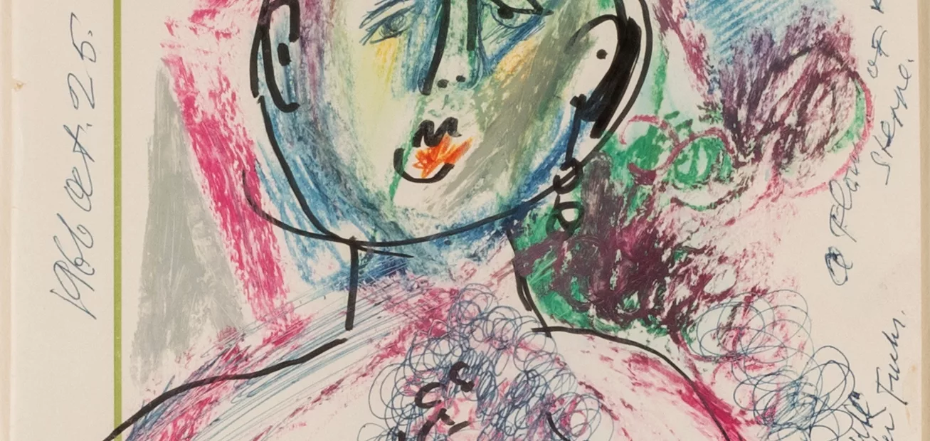 Weiblicher Halbakt mit Blume, Mischtechnik auf Karton, 32 cm x 24 cm Blattmaß, signiert, 1966 datiert, 'Drawing by David Burliuk'...