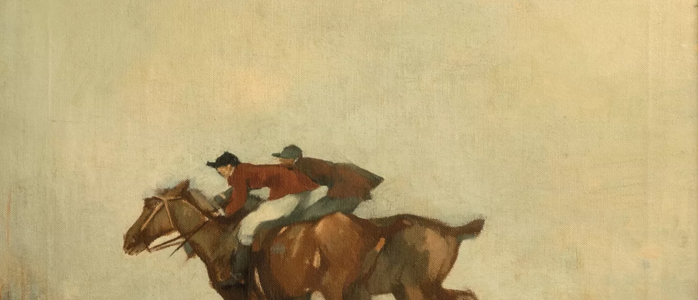 Pferderennen, Öl auf Leinwand, 62 cm x 54 cm Leinwandmaß, signiert, Keilrahmen drückt sich leicht durch die Leinwand, dort partiell...