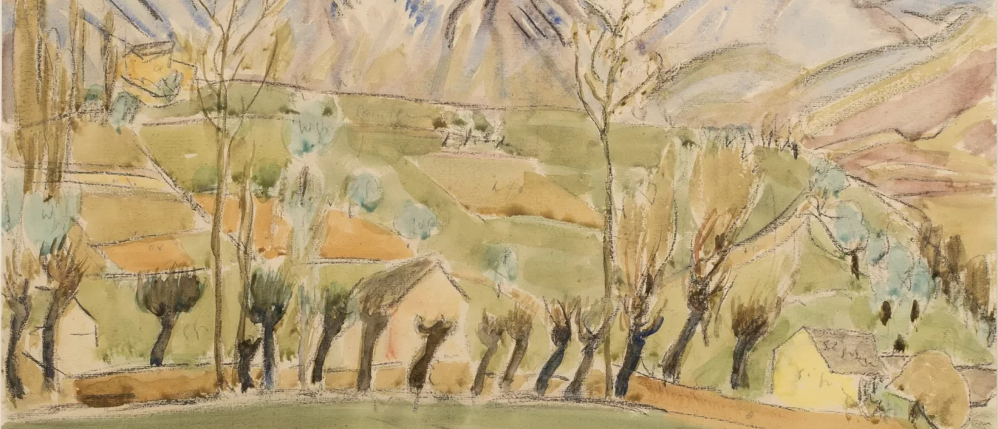 'Hochebene', Mischtechnik und Aquarell auf Papier, 51,5 cm x 61,5 cm Sichtmaß, signiert, 26 datiert, betitelt, unter Passepartout montiert,...