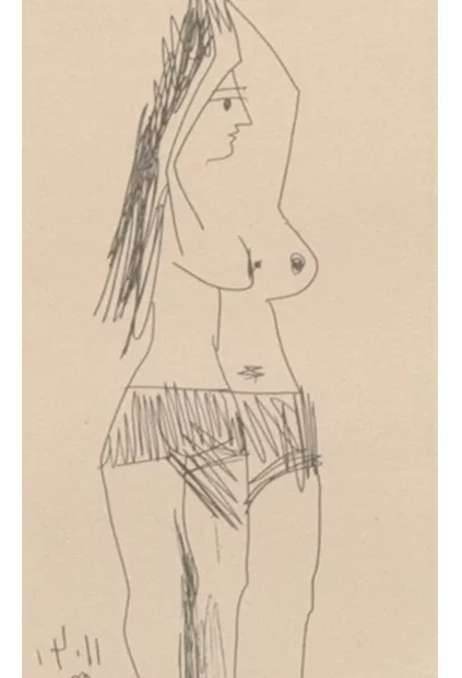 'Femme se coiffant' aus 'La Célestine', Kaltnadelradierung auf Papier, 12 cm x 6 cm Plattenmaß, 20,5 cm x 14,5 cm sowie 21 cm x 16,5 cm...