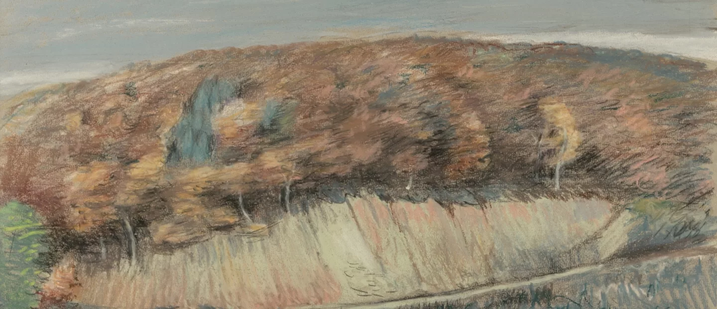 Landschaft mit Pferd, Pastell auf Papier, 30 cm x 45,5 cm Sichtmaß, signiert, 27.X.80 datiert, montiert
