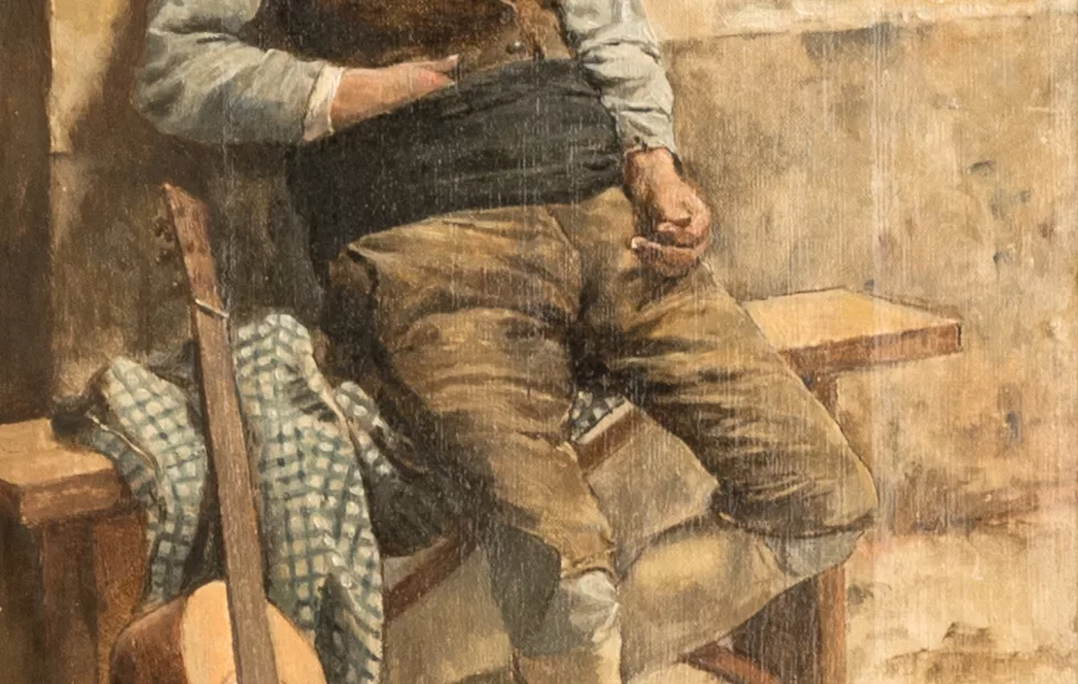 Guitarrista dormido (Schlafender Gitarrenspieler), Öl auf Leinwand, 42 cm x 22 cm Leinwandmaß, signiert, leicht reinigungsbedürftig