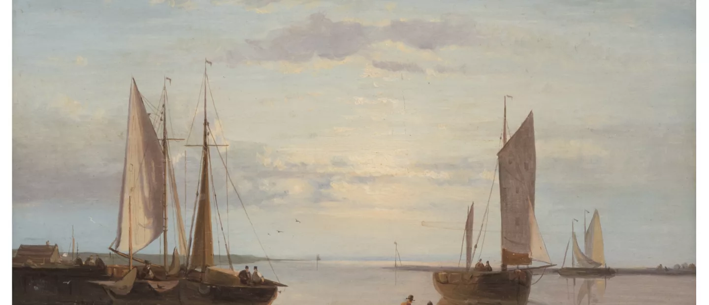 Segelschiffe und Ruderboot, Öl auf Platte, 26,5 cm x 37,5 cm Werkmaß, signiert, reinigungsbedürftig, leicht craqueliert, partiell...