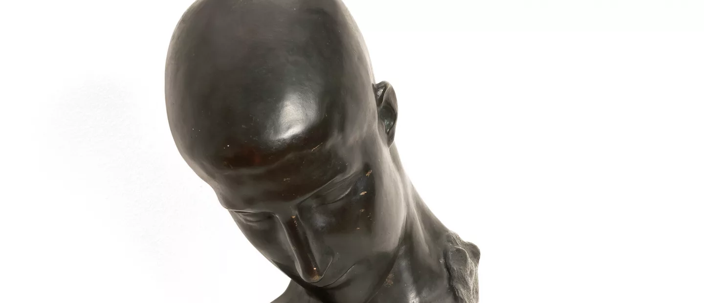 Kopf des knienden Jünglings, Bronze, dunkel patiniert, Höhe 25 cm, im Guss signiert, bestoßen, leichte Kratzer, partiell Beschädigungen...