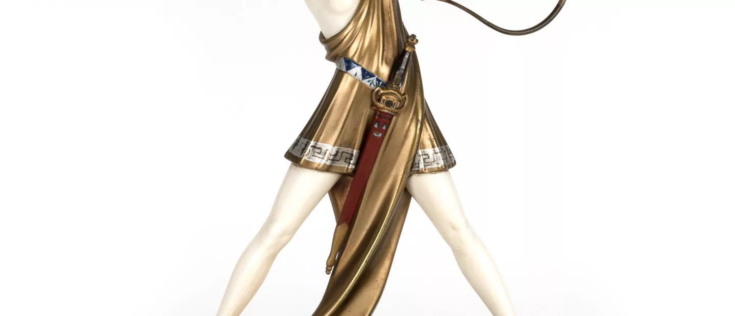 Diana, Bronze, polychrom patiniert, geschnitztes Elfenbein*, Pfeil und Bogen sowie Schwert aus patiniertem Metall, Figur montiert auf...