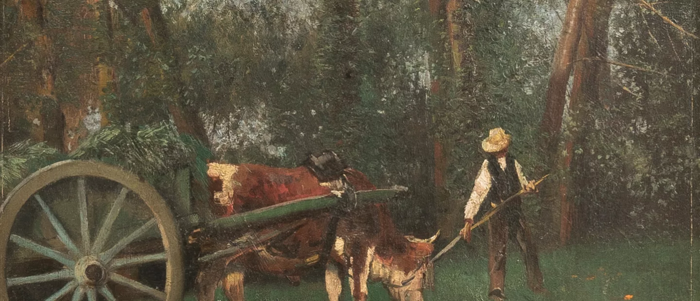 Bauer mit Rindvieh am Waldrand, Öl auf Leinwand, 71 cm x 53 cm Leinwandmaß, signiert, 90 datiert, erneuerter breiterer Keilrahmen, dadurch...