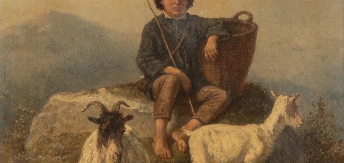 Der junge Ziegenhirte, Öl auf Leinwand, 26,5 cm x 21 cm Leinwandmaß, monogrammiert, 1855 datiert, craqueliert, restaurierte...