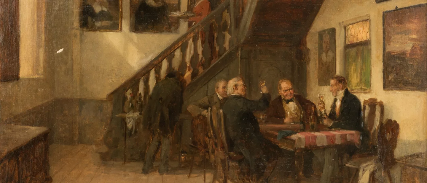 'Am Tisch', Öl auf Leinwand, 41,5 cm x 63 cm Leinwandmaß, signiert, doubliert, partiell retuschiert, partiell Farbabplatzer