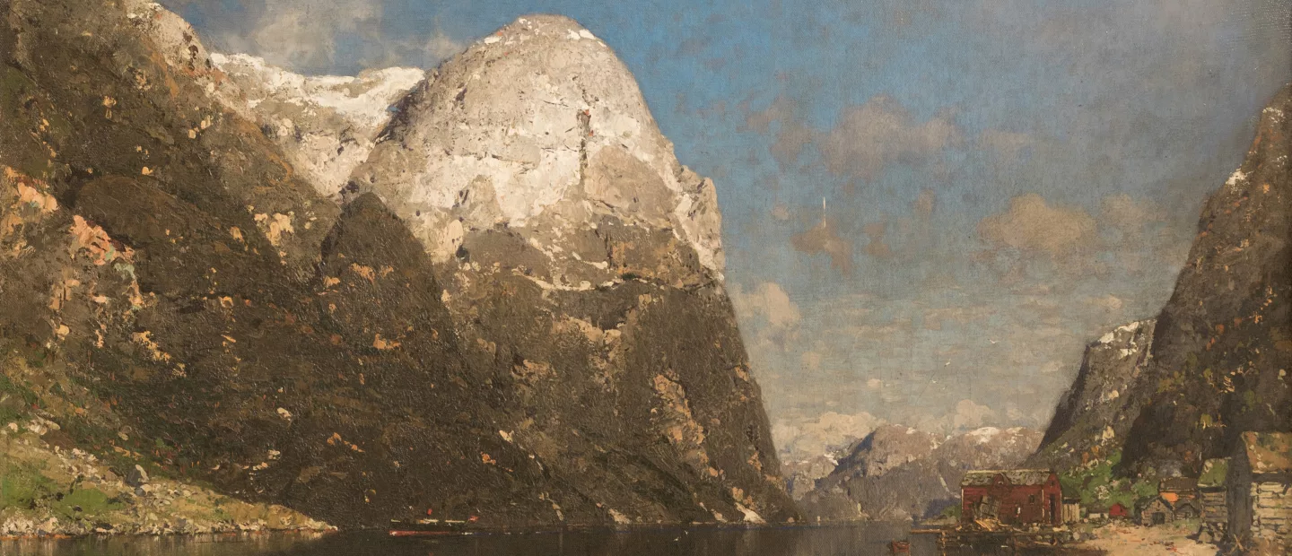 Fjordlandschaft, Öl auf Leinwand, 63 cm x 97 cm Leinwandmaß, signiert, 1886 datiert, doubliert, leicht craqueliert, partiell retuschiert,...