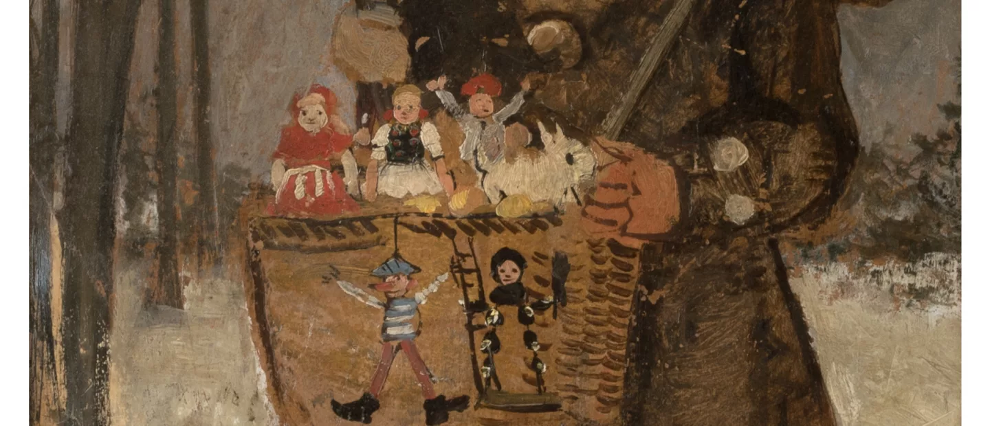Nikolaus mit Spielzeugkorb, Öl auf Papier auf Karton aufgezogen, 57,5 cm x 34,5 cm Werkmaß, verso signiert, verso Studienskizzen, partiell...