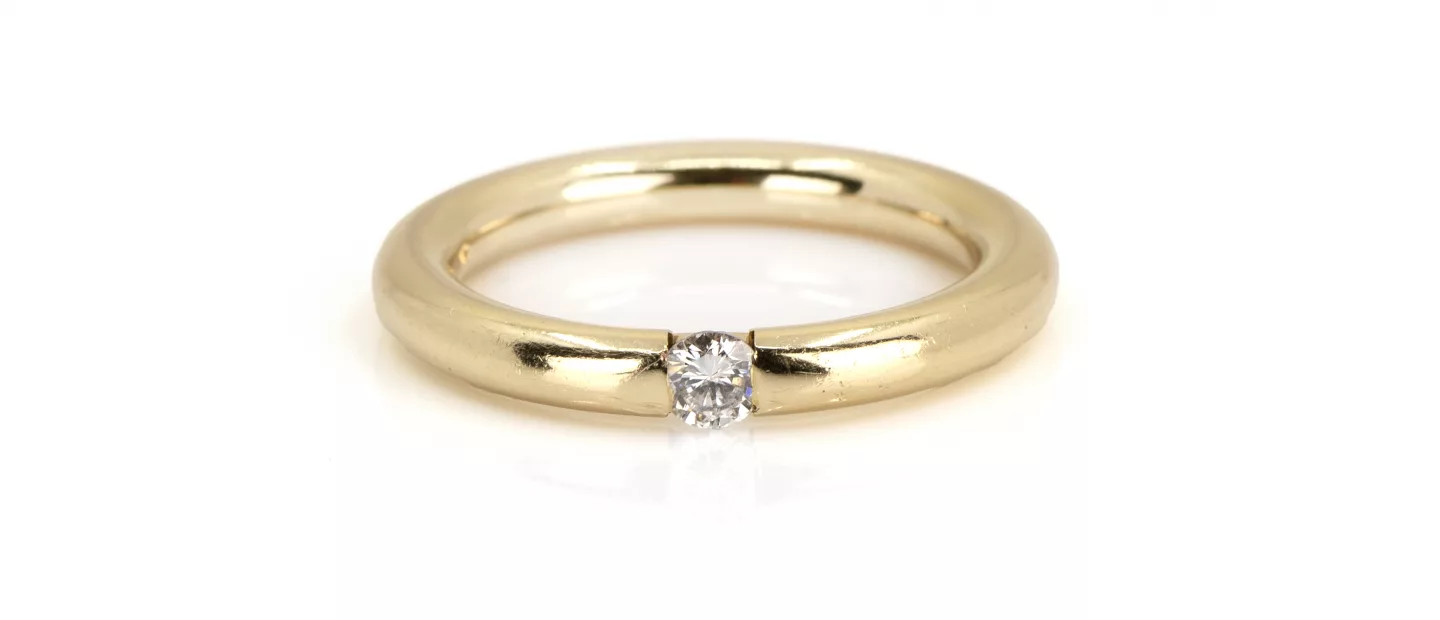 585 Gelbgold, punziert, Diamant im Brillantschliff, ca. 0,18 ct, G, si, RW 56, Gewicht ca. 5,8 g