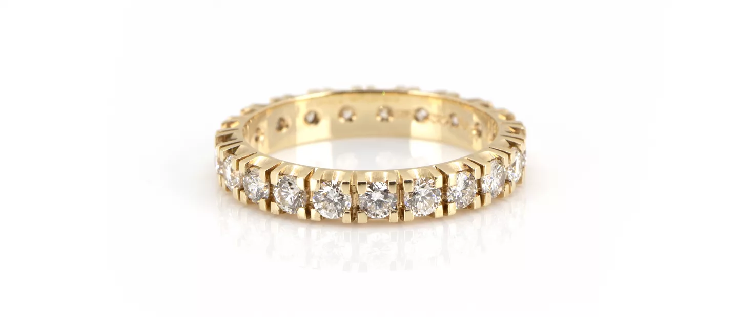 585 Gelbgold, punziert, 21 Diamanten im Brillantschliff, gesamt 1,89 ct, punziert, F-G, if, RW 58, Gewicht ca. 4 g