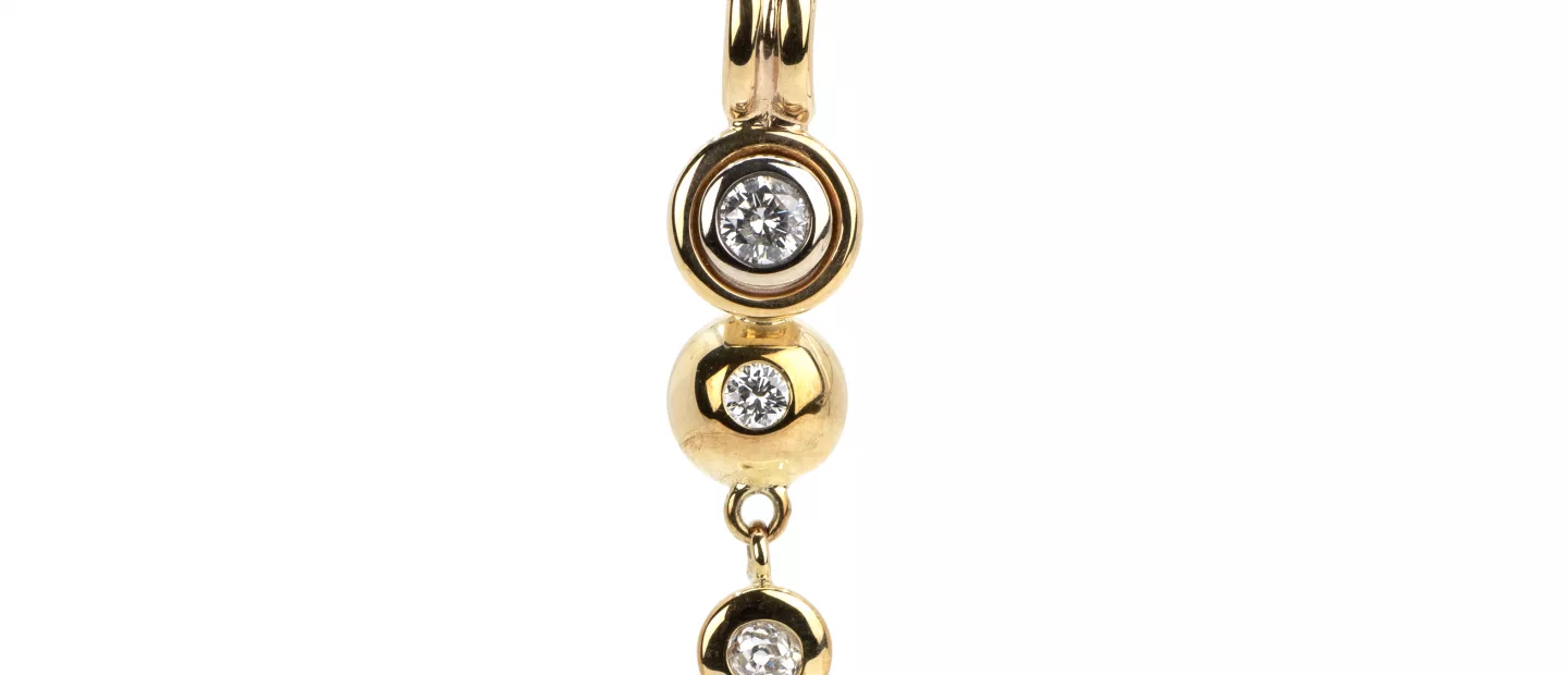 585 Gelbgold, punziert, Diamanten im Billantschliff, gesamt 1,50 ct, H, vs, Länge 2 cm, Gesamtgewicht ca. 9,2 g