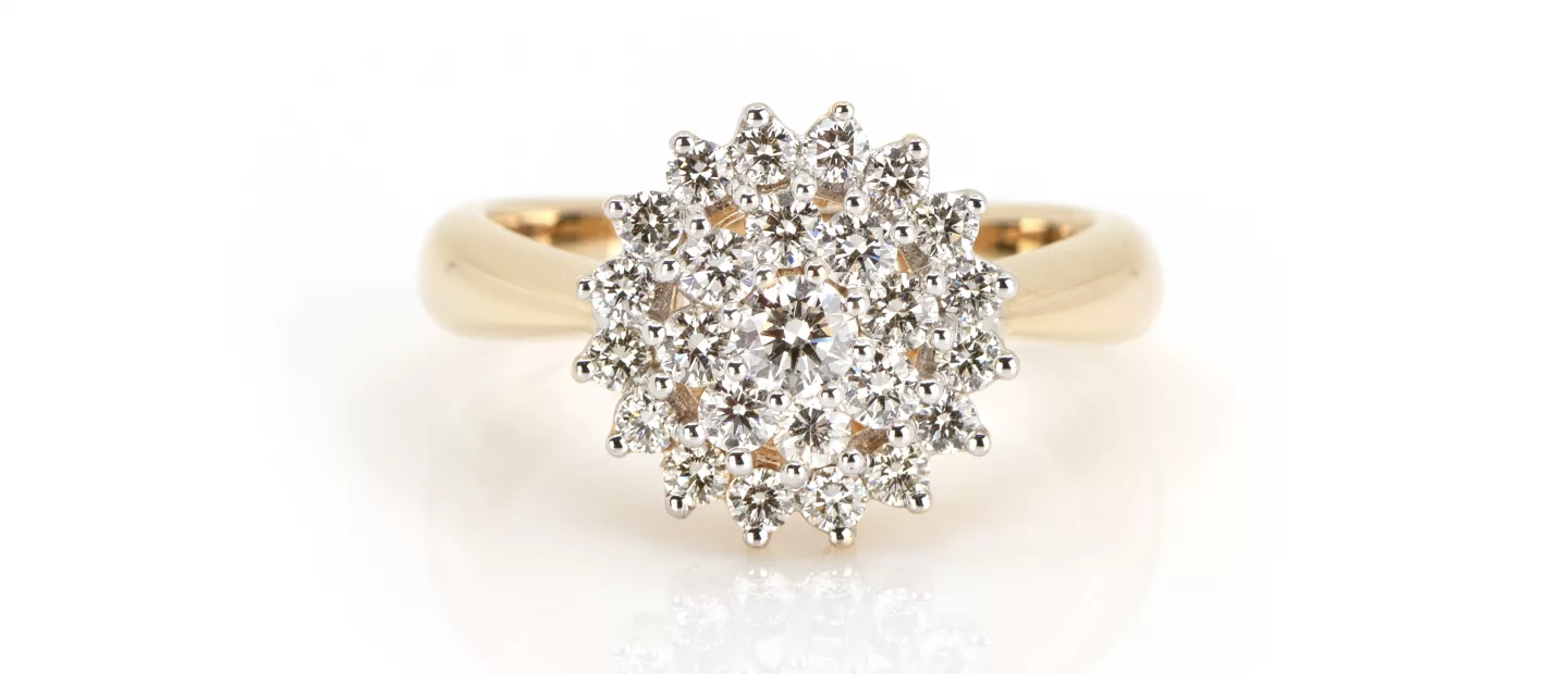 585 Gelbgold, punziert, 25 Diamanten im Brillantschliff, gesamt ca. 1,08 ct, I-J, vvs, RW 57, Gewicht ca. 6 g