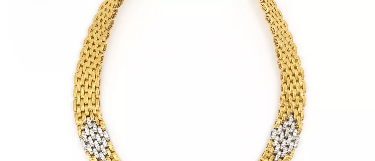 Italien, 750 Gelb- und Weißgold, punziert, Markenpunze, 144 Diamanten im Brillantschliff, gesamt ca. 1,44 ct, H, vs-si, Länge 44,5 cm,...